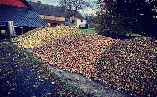 Variétés : 22 variétés de pommes produites sur l'exploitation (..., Petit amer, Marie Ménard, Closette, Douce Coët Ligné, Cartigny, Marin Onfroy, Doux Moine, Grasse Lande, Judor, Redstar,...)